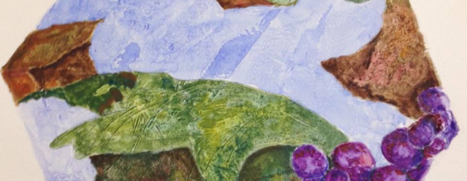 In this special time, the viticulturists prepare for Vendemmia, grape harvest, which will yield the wine for the coming years according to the grape variety. It is this special time which inspired this painting which I entitled; Grapes, she wrought. This is painted on 300gsm cold-pressed Arches paper treated with gesso in parts. This play with textures has resulted in an innovative reaction for the watercolours which has been very pleasing.